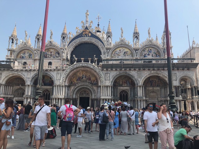 We enjoyed walking around Venice and seeing all of the popular sights to see in and around St. Marks Square, about a 20 minute walk from our hotel. First, we stopped by the Rialto Bridge to take pictures and walk over it to get to the main square. The area was quite crowded with many, many tourists. After that, we went to see the Bridge of Sighs. The bridge is made out of limestone and is enclosed over the Rio di Palazzo. As soon as we got to Piazza San Marco, we got on line to go into St. Mark’s Basilica. It was a beautiful church, with fantastic architecture and rich with history. We also enjoyed seeing the St. Marks Clock Tower. There were many restaurants and shops to go into around this area. Eating outside on St. Marks Square itself had a cover charge for the location. We found several options right outside of the square to sit and relax at without having the pay the additional fee.