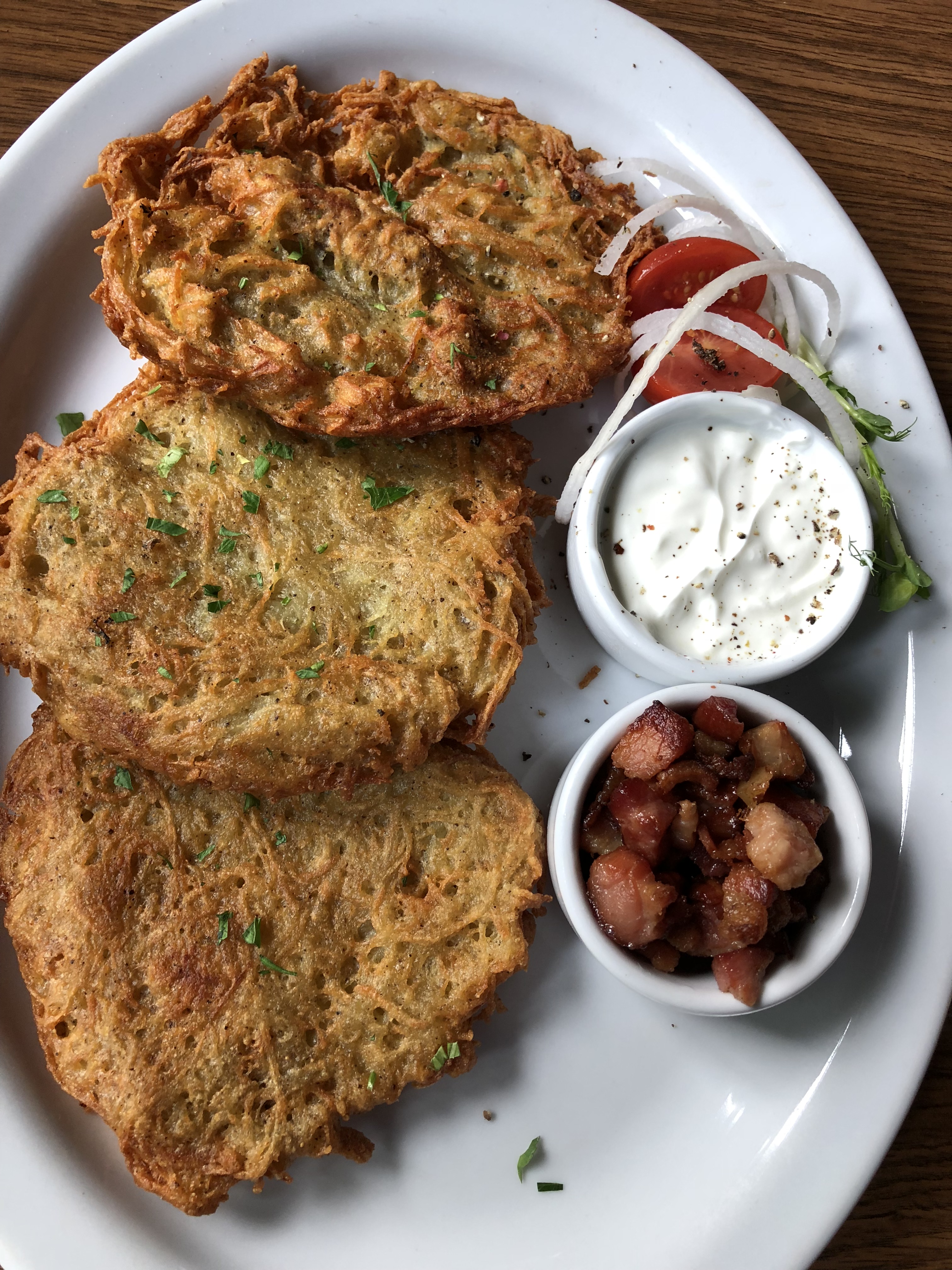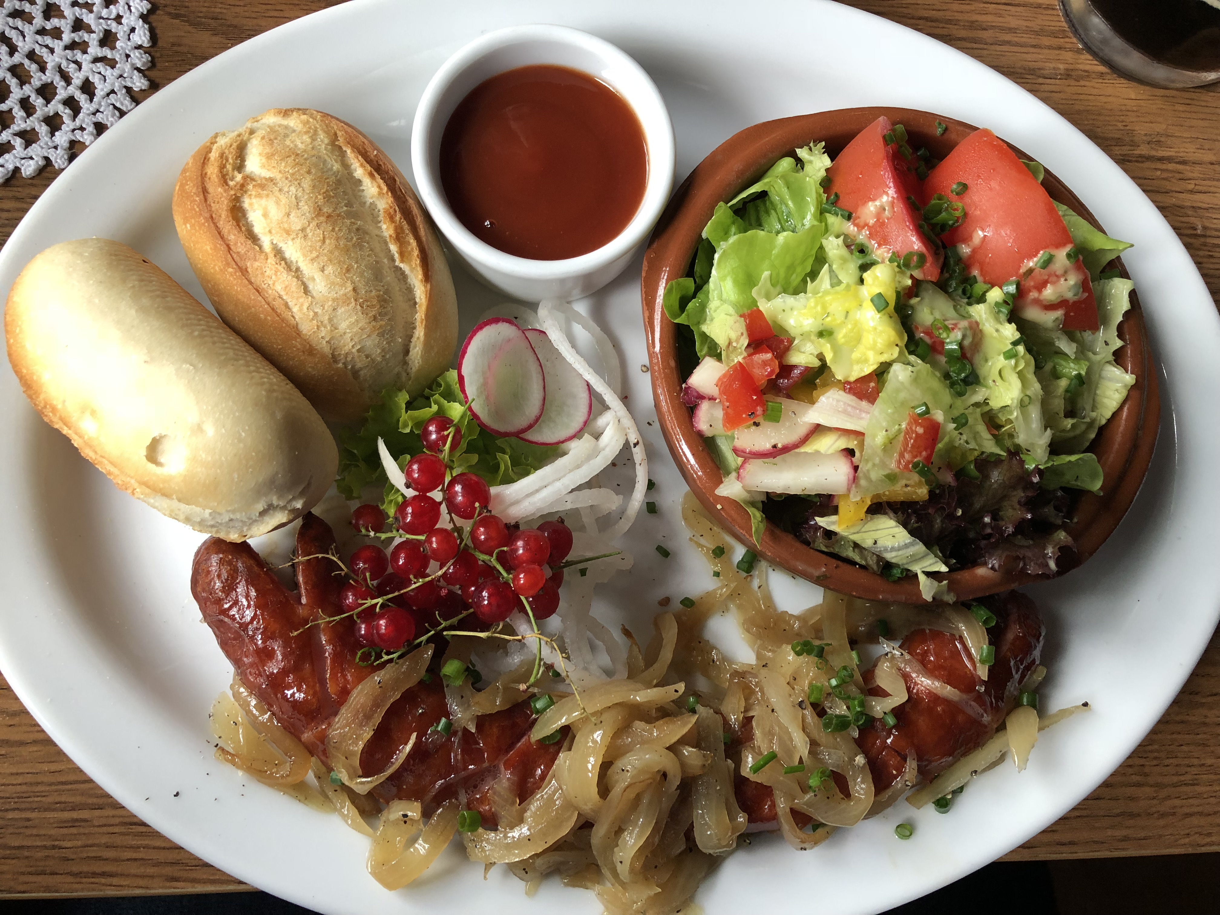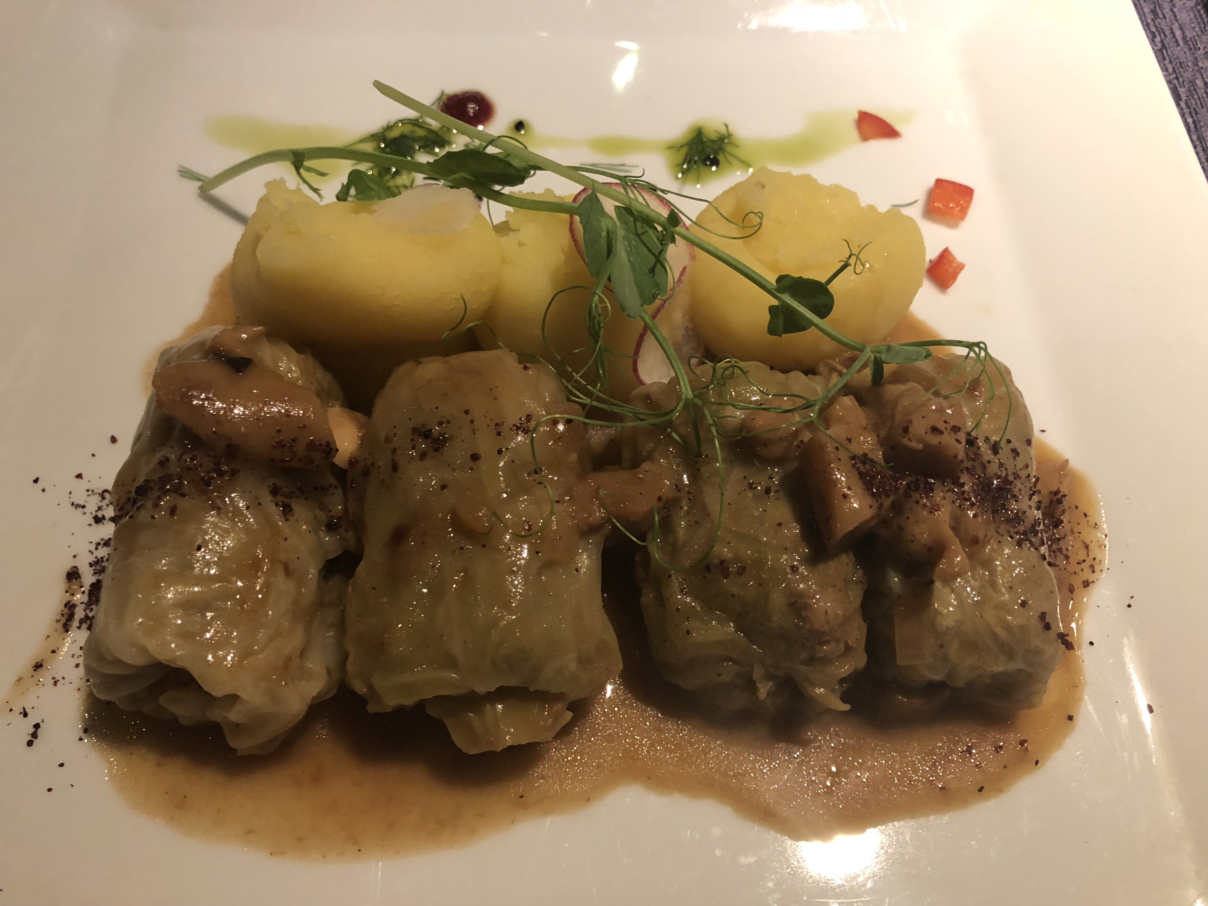 We found a traditional Polish/ folk style restaurant about 10 minutes away from Auschwitz called Chata Na Zaborskiej. There was a nice beer garden outside underneath a tent for folks who would like to sit and relax outdoors. Inside there was a traditional, cozy atmosphere that made us feel like we were at home. The food was delicious. We sampled a few different traditional dishes: starting with a potato pancake appetizer, kielbasa and their version of a baked pierogi (it reminded us of a pierogi calzone hybrid). The food was fantastic and affordable. This is a must do if you are near the Auschwitz Museum or heading towards Kraków.