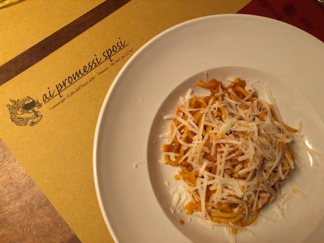Ai Promessi Sposi was a 5 minute walk from our hotel. It was our first meal in Venice (and Italy) and did not disappoint! The menu was not in English, so we needed the waitress to translate for us. We quickly learned some important words in Italian which helped us for the rest of our trip! The pasta was so fresh and cooked to perfection. Miro had the fish and he was happy with how his meal came out. The staff was friendly and welcoming, even considering the fact that we weren’t eating dinner until 9:00pm (because of our luggage mess at the airport). The prices were reasonable and this was one of our favorite meals in Venice.
